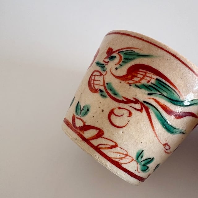岐阜県多治見市にある美濃焼の窯元「蔵珍窯」さんの呉須赤絵のそば猪口です。