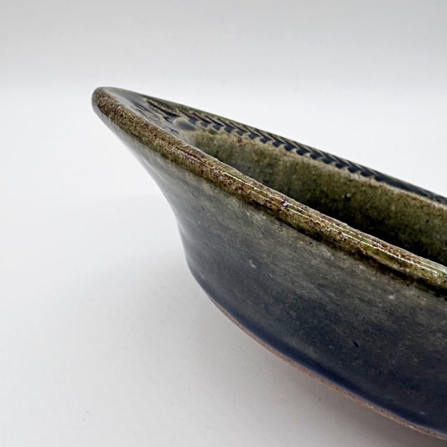 高橋あい 紡鐘型グラタン皿 呉須_益子原土