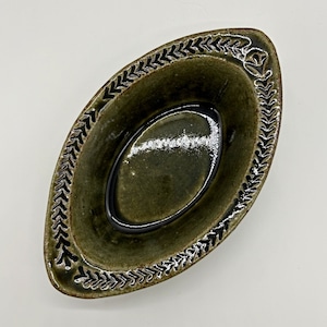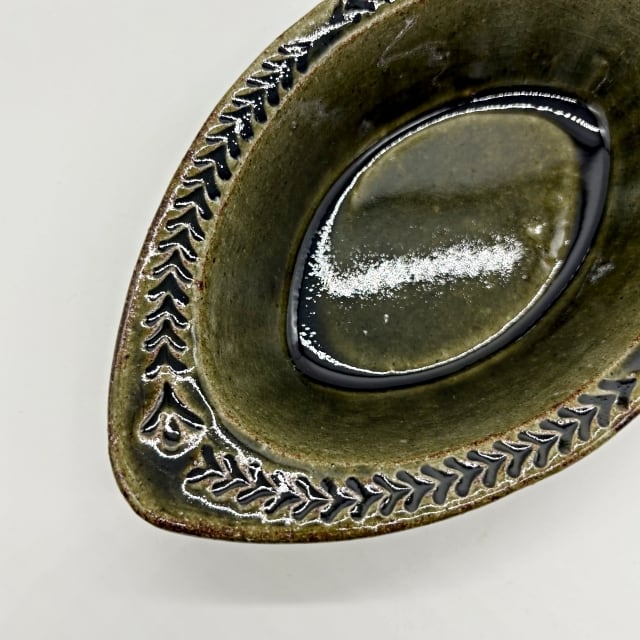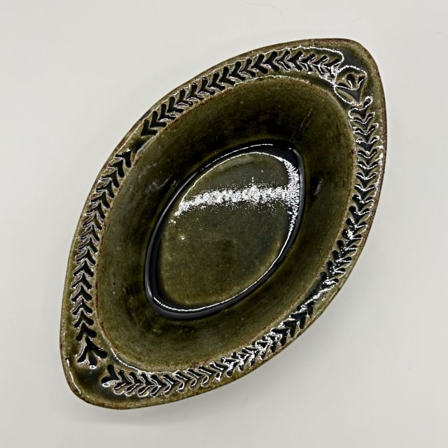 栃木県益子町 星の宮の工房で作陶されている高橋あいさんの呉須_益子原土の紡鐘型グラタン皿です