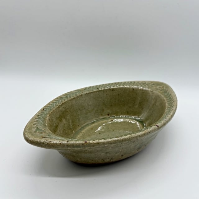 栃木県益子町 星の宮の工房で作陶されている高橋あいさんの灰_益子原土の紡鐘型グラタン皿です