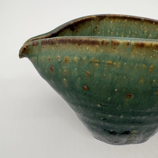 少し青みかかったマットな織部のおちついた感じが素敵です。