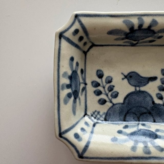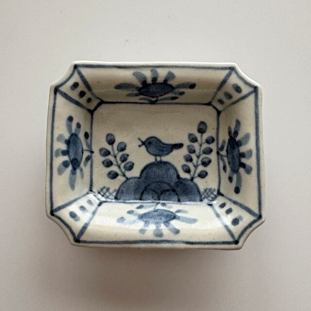 樋山真弓_染付鳥文隅切角小皿